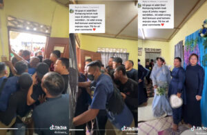 The viral video shows an aggressive “battle” taking place between the newlyweds’ male family members. In the video, the bride’s family were seen blocking their attempt to “break into” the bride’s house. According to TikToker @chiaera_, the ceremony is known as the “Upacara Merompak”.